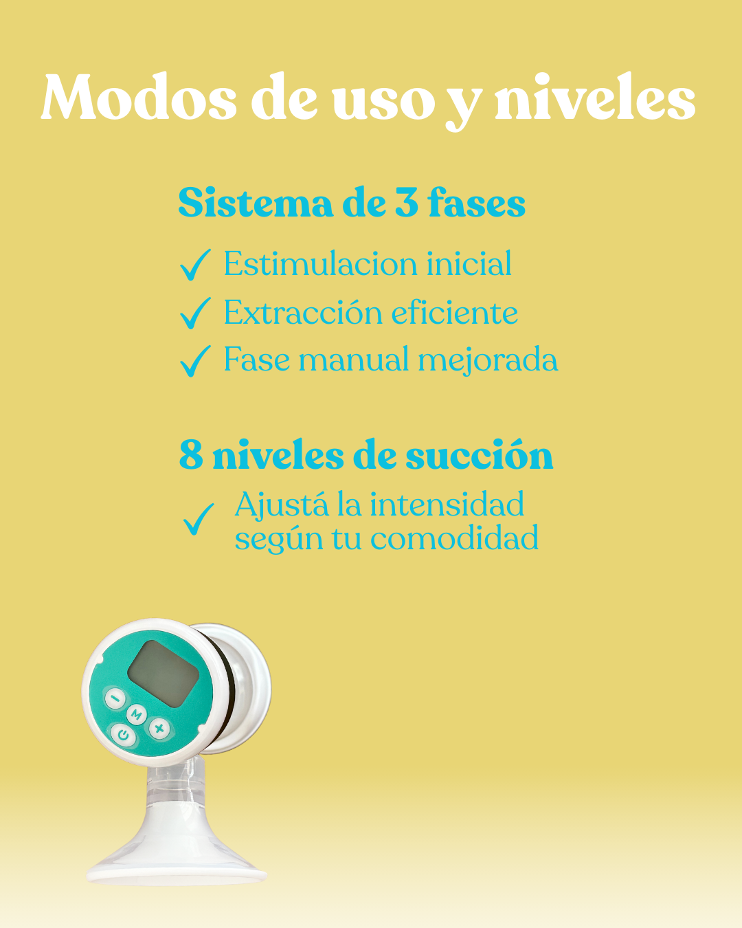Su sistema de succión imita el patrón natural del bebé, ayudando a estimular la bajada de la leche y logrando una extracción efectiva sin generar molestias.